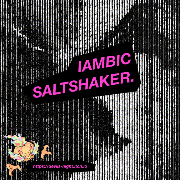 Parroting what others have already said, but it cannot be emphasized enough how highly the pacing and spacing of the dialogue elevate Iambic Saltshaker. It is a pure joy to read through, and that also synergizes so nicely, thematically, with the premise of the piece. It's really beautiful!